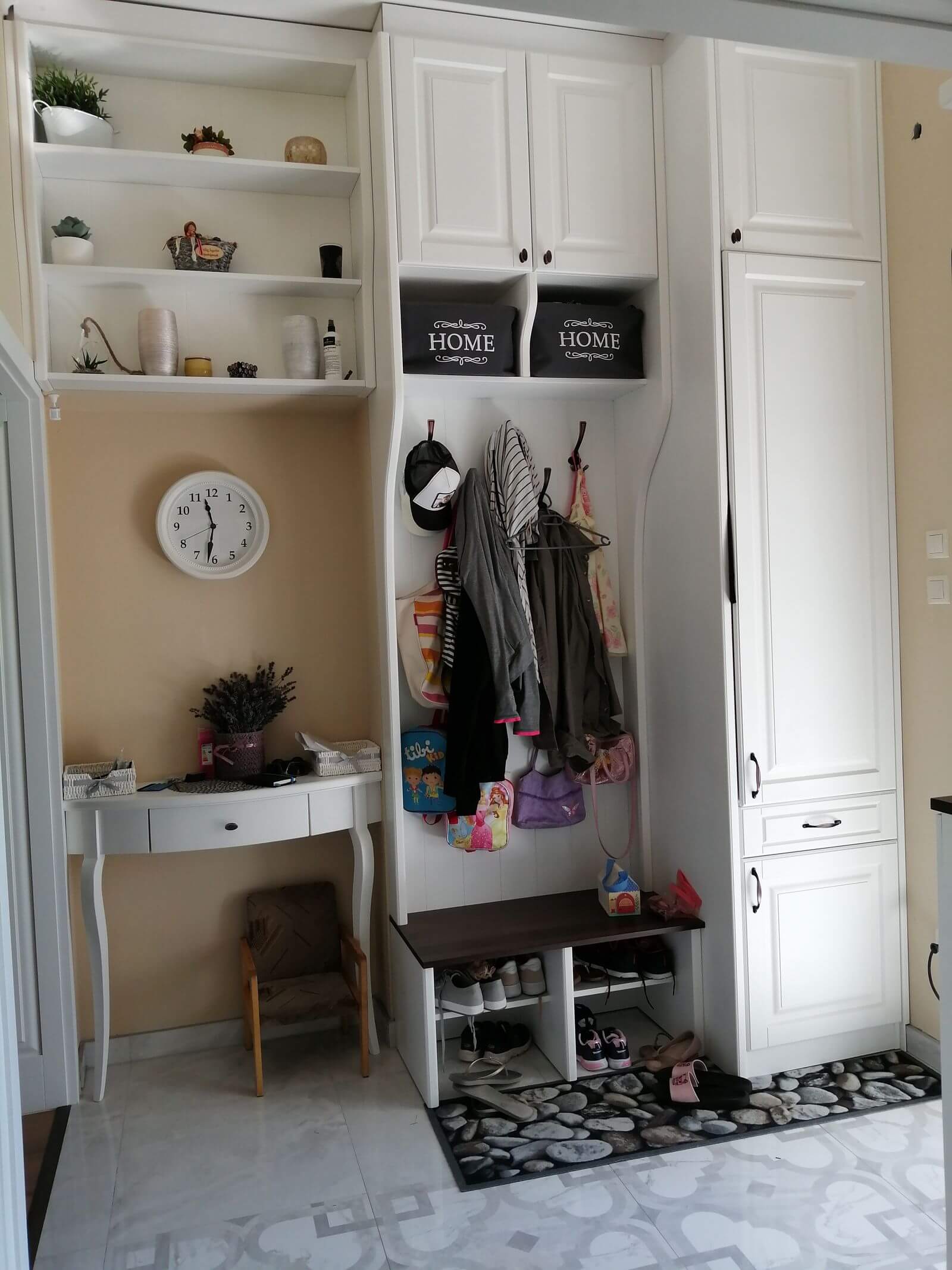 cipősszekrények látszó oldala színazonos festéssel készült.