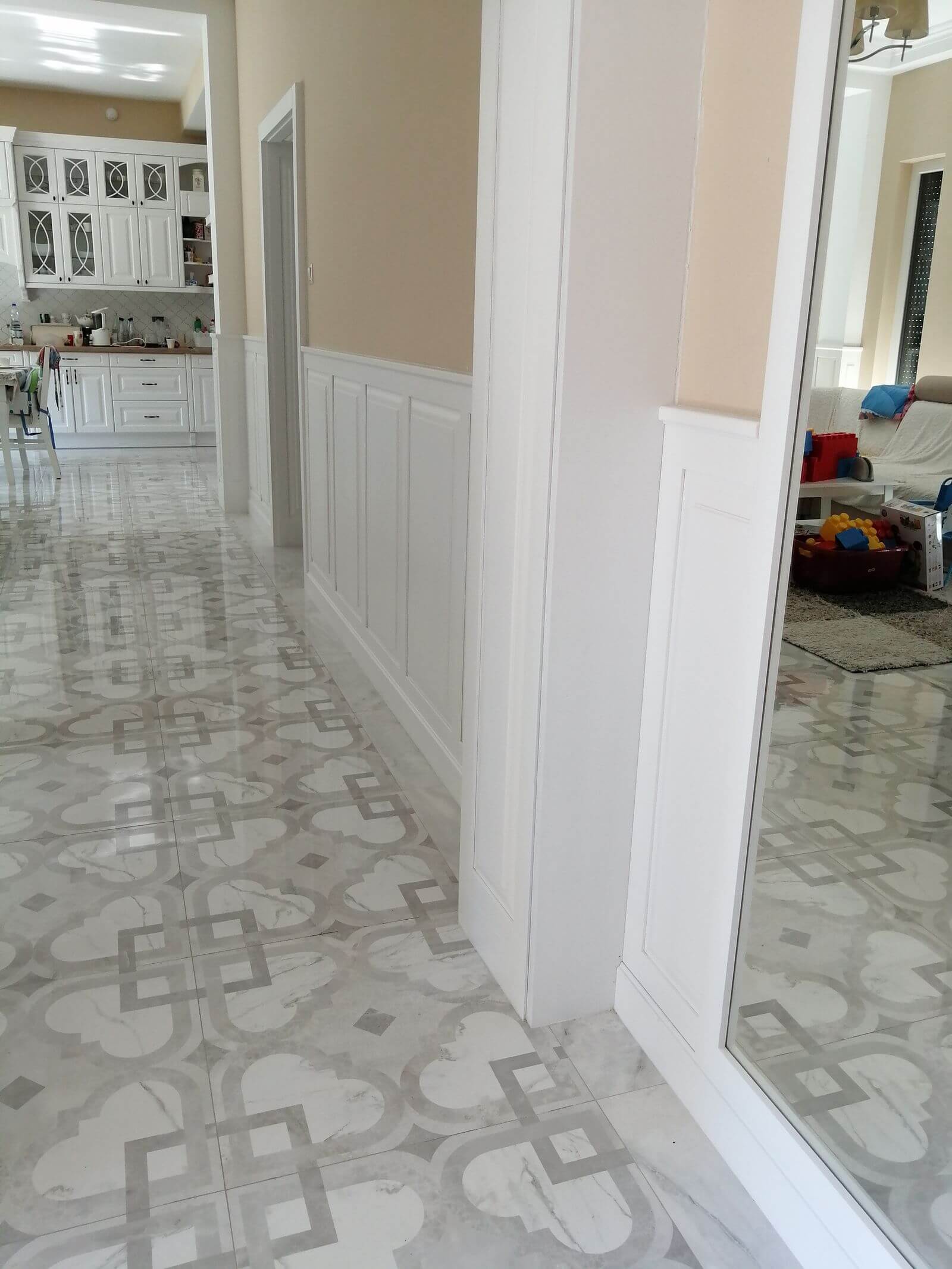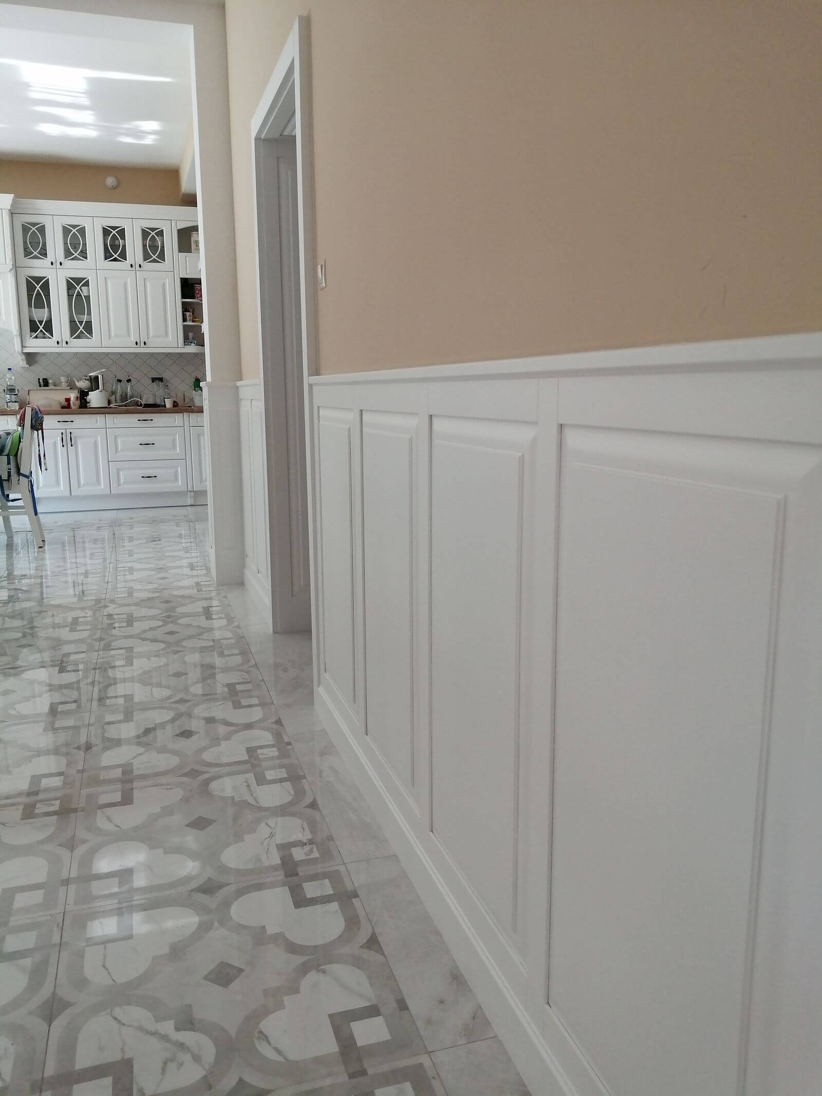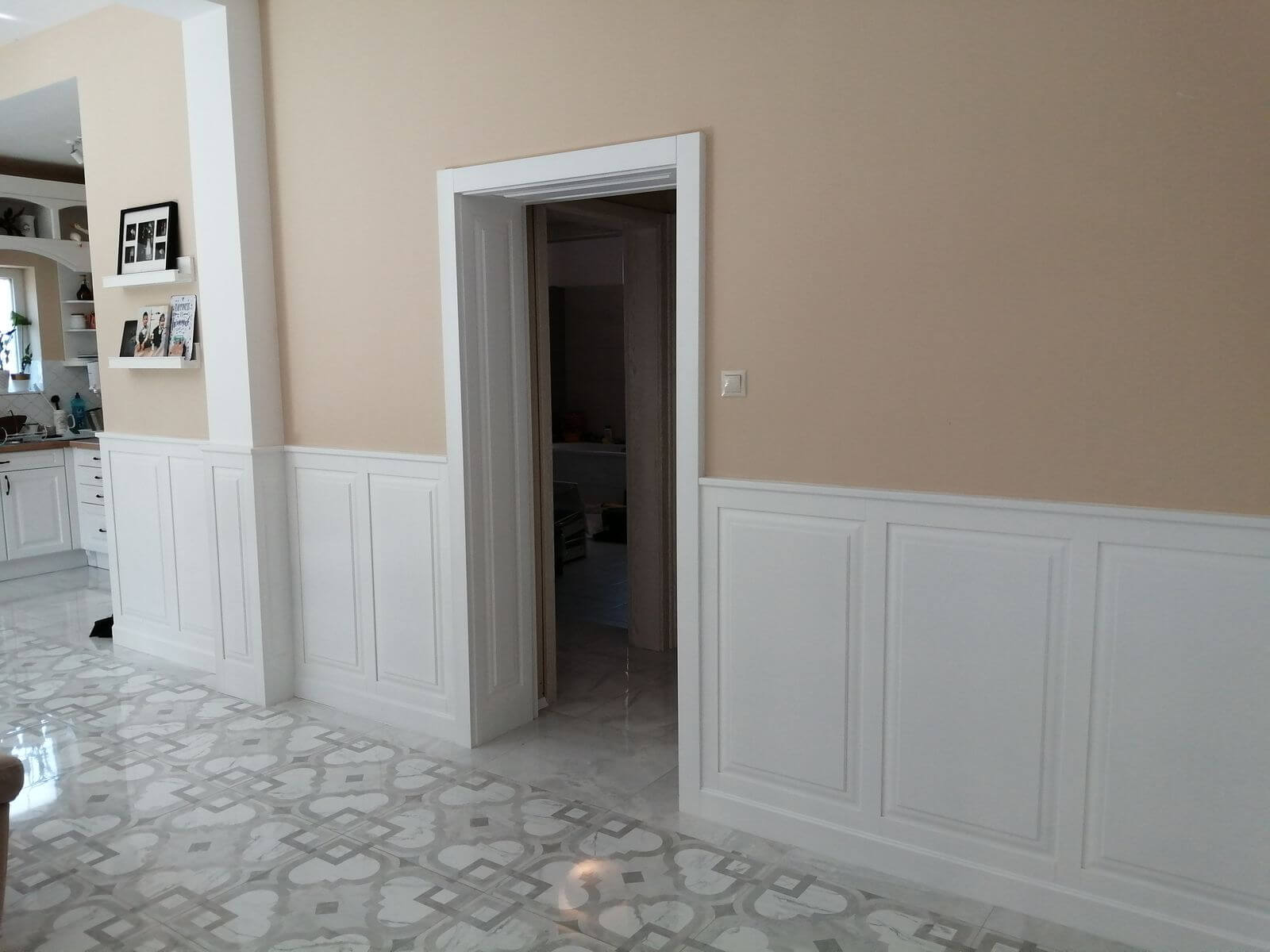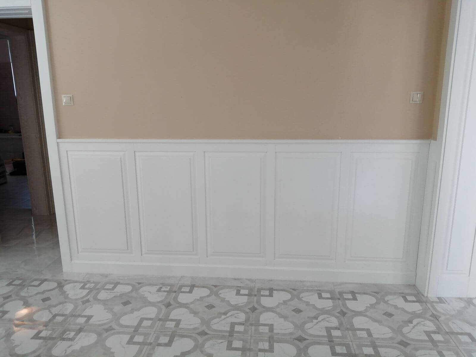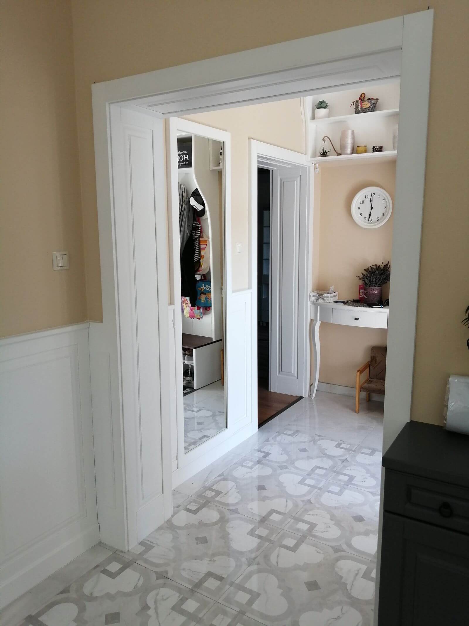 teljes egységgé lett a fali burkolatokkal, ajtó nyílás takarásokkal.