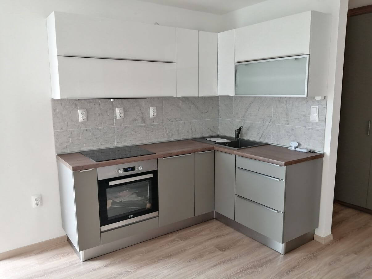 Konyhabútor siófoki családi házba Matt szürke és fehér színben